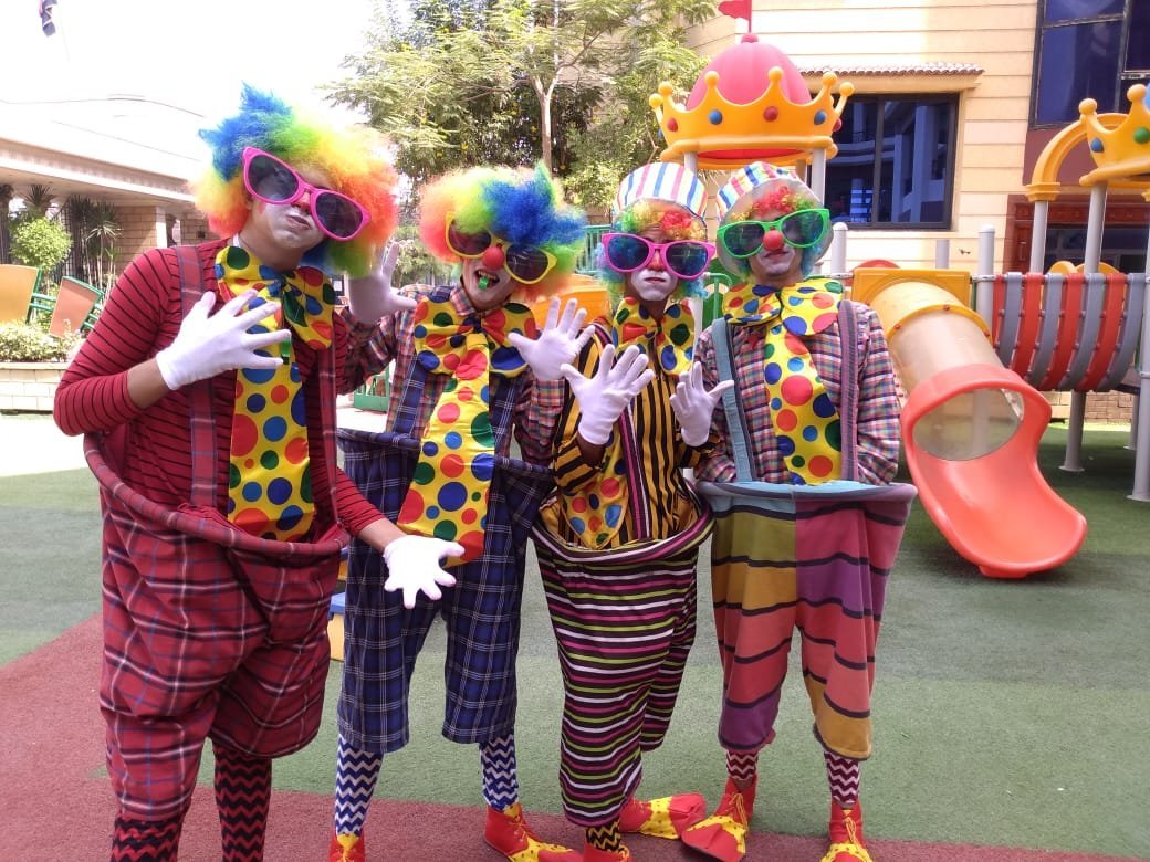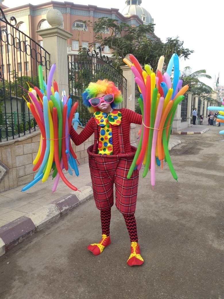 بيلعب مع الأطفال وبيوزع عليهم بالونات وبيعملهم رقصات جميله ملحوظه : عدد البالونات اللى معاه 40 بالونه فقط المدة 30 دقيقة